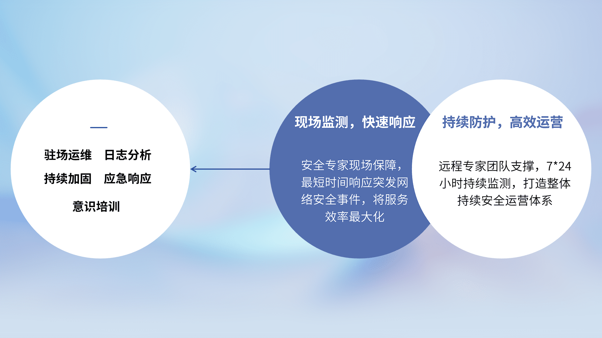7X24小时持续监测安全事件,保持安全策略有效性,降低资产脆弱性风险,,,精准拦截黑客攻击,,,减少被黑客利用的机会,,,第一时间遏制,,,,降低损失。。